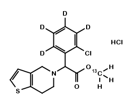 | Synonym : | (R,S)-Methyl[13C]-2-(2-chlorophenyl)-2-(4,5,6,7-tetrahydrothino[3.2-c]pyridin-5-yl)acetatehydrochloride-D4; (C)methyl 2-[2-chloro(3,4,5,6-D4)phenyl]-2-{4H,5H,6H,7H-thieno[3,2-c]pyridin-5-yl}acetate hydrochloride |